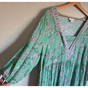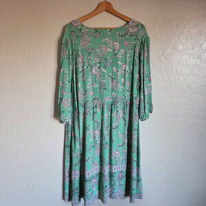 J.Jill Peasant Boho Border Printed Flounced Hem Dress Size Women's XL Light Garden Green Paisley Print 3/4 Sleeves