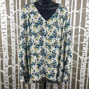 J. Jill Botanical Floral Bird Print High Low Hem Blouse XL