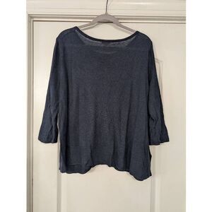 J. Jill Boxy Linen Blend Sweater Top women's Large petite navy blue nautical