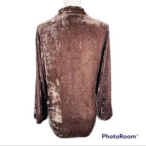 J.Jill Brown Crushed Velvet 100% Rayon High/Low Long Sleeve Button down Shirt