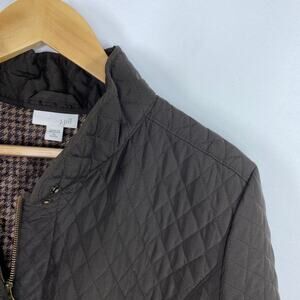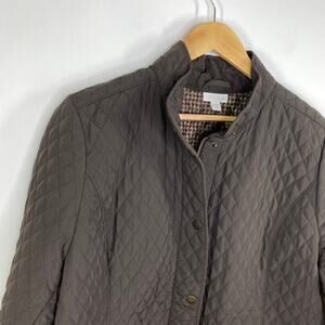 J.Jill Brown Quilted Full Zip Snap Long Sleeve Jacket Women's Size XLarge Petite
