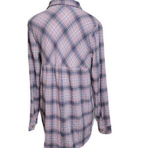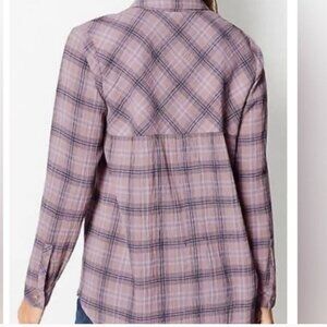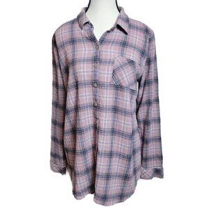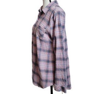 J. Jill Button Up "Gauzy" textured Pink Plaid Shirt - size S