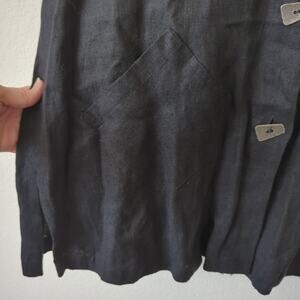j.jll size medium women's jacket 100% linen made in USA. vintage excellent quality material. heavyweight linen art to wear lagenlook artsy buttons length 31 pit to pit 24 oversized loose fit black