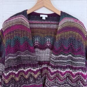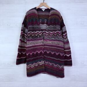 J.Jill Cardigan Sweater Women 3X Aztec Zigzag Knit Wool Blend Cozy Boho Grandma