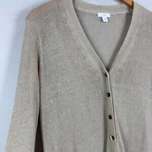 J.Jill Cardigan Womens S Beige Linen Blend Open Knit Button-Front Duster Coastal