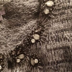 J Jill Cardigan Wool Blend Gray Knit Rhinestones