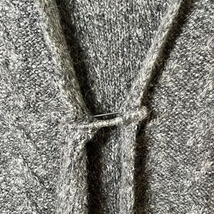 Stay warm in style with this J.Jill open cardigan, crafted from a soft and cozy cotton-alpaca blend. The rich charcoal grey color and unique wrapped safety pin closure give it a sophisticated, artisan feel.