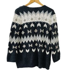 J.Jill Chunky Knit Fair Isle Embellished Wool Blend Oversized Cardigan Size L