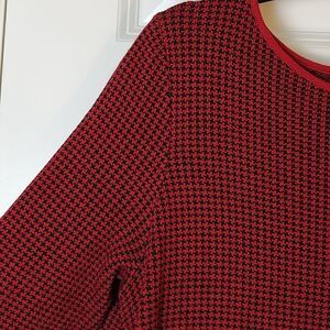 J. Jill Long Sleeve Cotton Knit red & blue houndstooth long sleeve dress. The neckline, sleeves and hem are trimmed in red. Minimalist and a classic piece that can be worn as a dress or as a tunic with leggings and boots. Soft and warm knit made of 70% cotton, 15% nylon, 15% viscose. Size Medium.