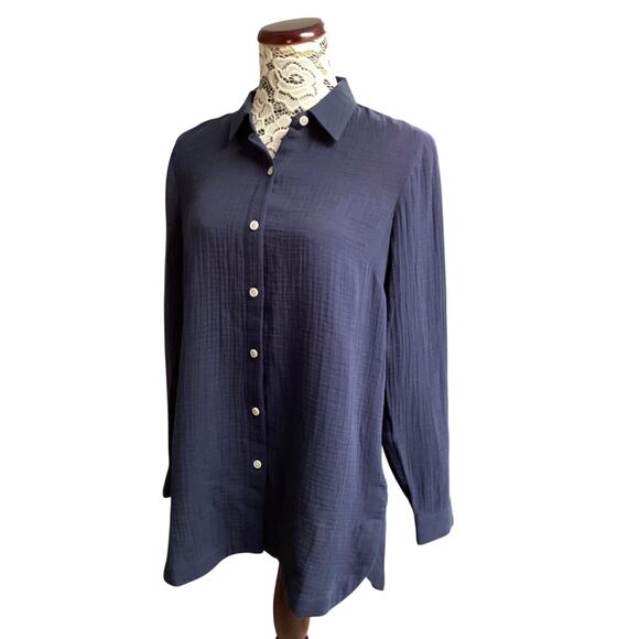 J.Jill Cotton-Gauze Split-Hem Tunic size S navy