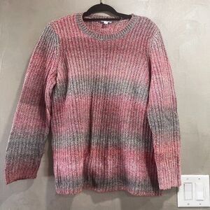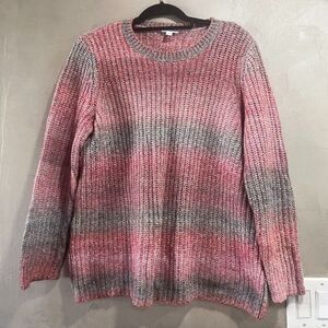 J.Jill Cozy Ombré Stripes Textured Sweater Pink Gray Medium