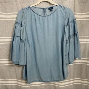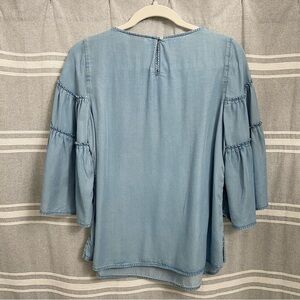 J.Jill / Denim Chambray 3/4 Ruffle Bell Sleeve Blouse Size S Petite