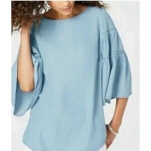 J.Jill Denim Chambray 3/4 Ruffle Bell Sleeve Blouse