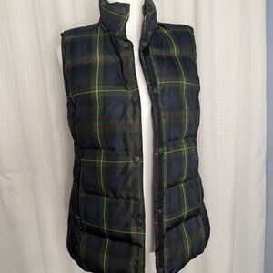 J.Jill Down Vest Jacket in Classic Plaid Design, Size XS
