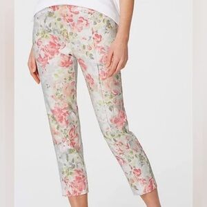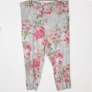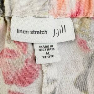 J.Jill EUC Pull on pants cream & rose pink floral linen Medium petite,90s look