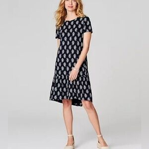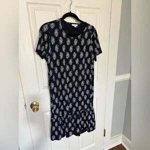J.Jill Elliptical Knit Paisley Print Dress in Navy | Size Small