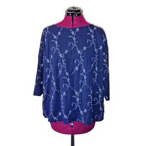 J.Jill Embroidered Top Blue Womens Size Large 3/4 Sleeves