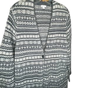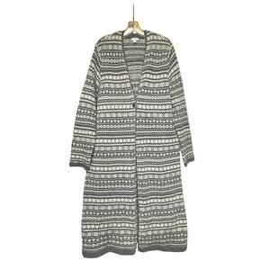 J.Jill Fair Isle Duster Cardigan Sweater size Large Long