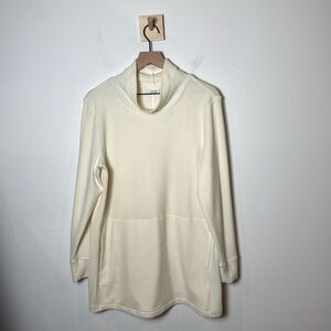 J.Jill Fit Womens Microfleece Turtleneck Tunic Sweatshirt in Cream size L