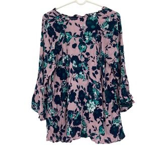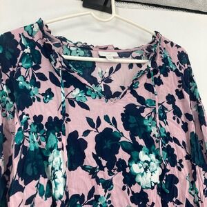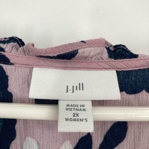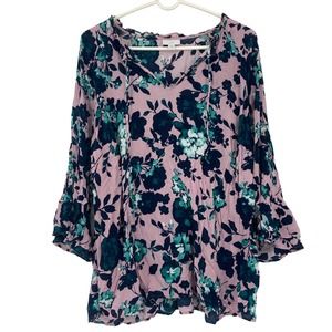 J.Jill Floral Blouse Rayon Peasant Split Neck Tassel Plus 2X