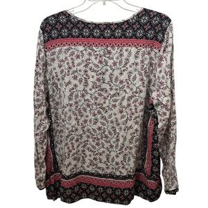 J.Jill Floral Border Print Long Sleeve Boho Blouse Size XL