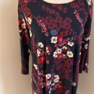 JJill Floral Dress, above knee. Black, red/white. Size PL