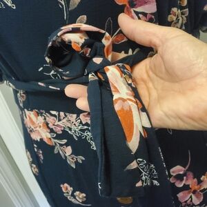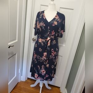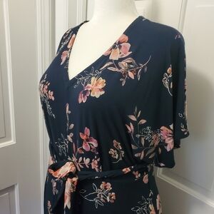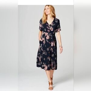 J.Jill Floral Print V-Neck Dolman-Sleeve Dress Size LP, Stretch, Belted