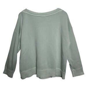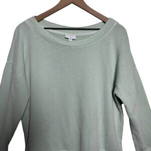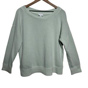 J.Jill Garment Dyed Trimmed Sweater Pullover Pear Green Sz Medium Cotton Coastal