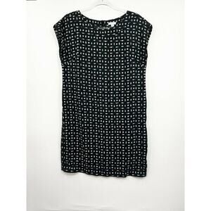 J Jill Geometric Black Small Petite Scoop Neck Linen Shift Mini Dress Size XS