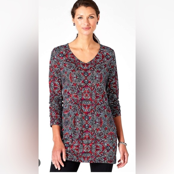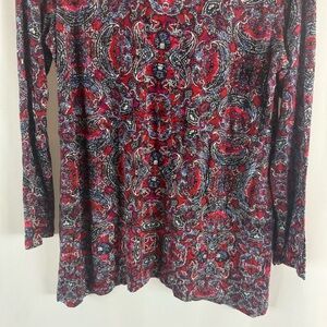 J.Jill Gorgeous V-Neck Knit Tunic ~ True Red Sparkling Paisley Size: M