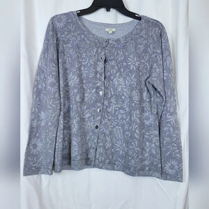 J.Jill Gray Cotton Floral Long Sleeve Button Cardigan Size S