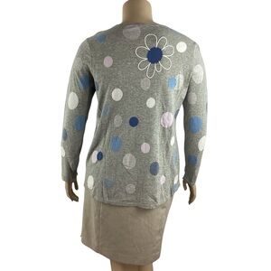 J.Jill Gray Cotton Floral Polka Dot Pullover Sweater Size L