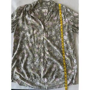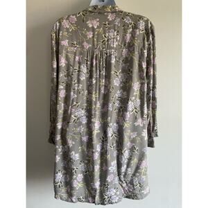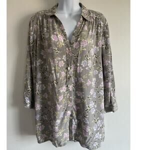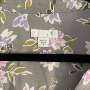 JJill Gray Floral Button Front Blouse Women’s Size M Rayon Tunic Top