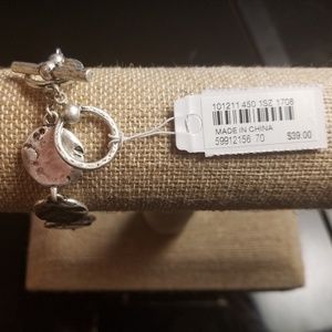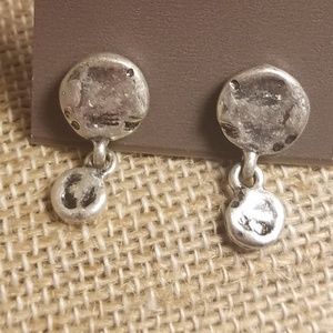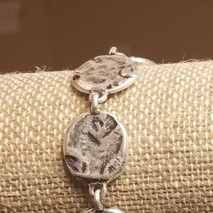 Hammered metal disks make up this bracelet, each disk is 1/2 inches. Earrings size is 0.4mm. Nice weight to the set, Never worn, New.