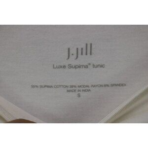 J.Jill Ivory 3/4 Sleeve Luxe Supima Tunic-Size Small-Minimalist. Item is in Great Condition. The material is 55% Supima Cotton, 39% Modal and 5% Spandex. Laying flat measuring armpit to armpit it is 22'' and 28.5'' in length.