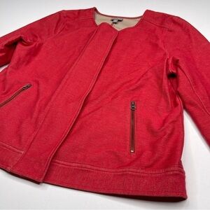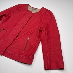 JJill Jacket Blazer Top Red Office Career Stretch Cotton Zip Snap Minimalist
