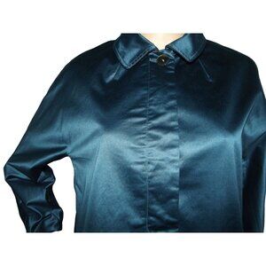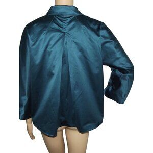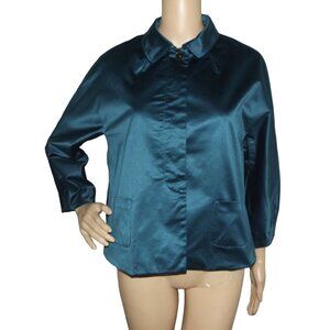 J.Jill Jacket Womens Size Small Teal Blazer formal Cropped Stretch Cotton Satin