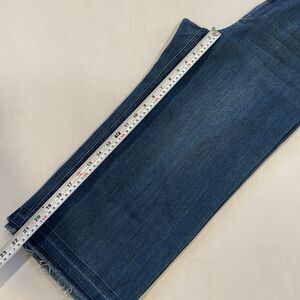 Flattering J.Jill size 14 petite (14p) Authentic Fit Full-Leg Crop jeans, women's. Front zip+button closure. Medium blue wash. Soft, comfortable cotton/spandex blend denim, for great stretch! Comfy enough for all-day wear. Trouser-style slit/slash front pockets, back slit pockets. Belt loops. Measurements in photos.