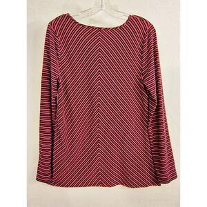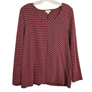 J.Jill Jersey Knit Tee Womens Size M Red Mixed Stripe Long Sleeve Pull Over Top