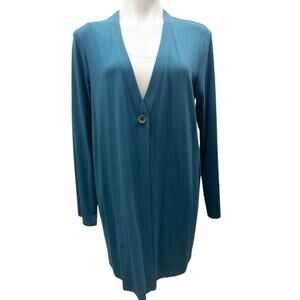 J.Jill Knit Cardigan One Button V-Neck Stretchy Jacket Women's Large Teal