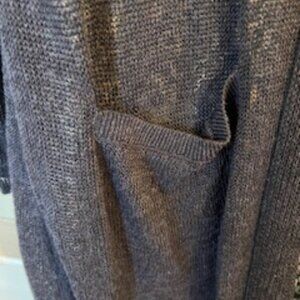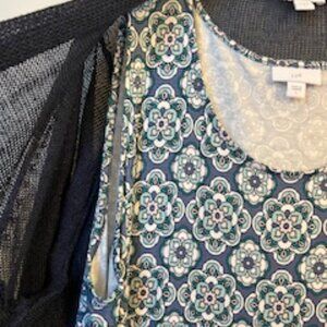 J.Jill Knit Mixed-Print Tank Dress (blue slate foulard border) with pockets. Includes the Eve Long Cardi (navy blue) with pockets.