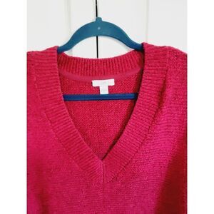 J. Jill L Sweater Women's Long Sleeve Red Heavy V-Neck Large Speckled Soft