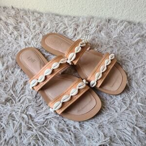 J.Jill Leather Slide Sandals With Seashells Women's Size 8.5