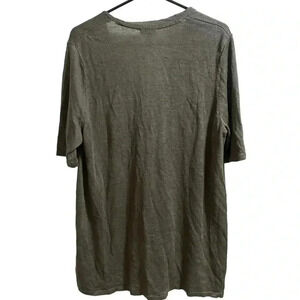 Trendy and cute cardigan. Lightweight linen blend. Three quarter sleeves. Three button closure to front. Color is a greenish grey.