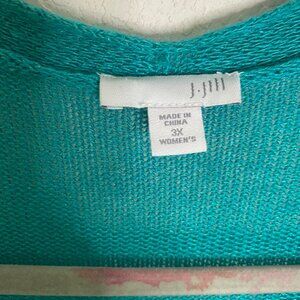 J.Jill Linen Blend Open Front Cardigan Womesn 3X Teal Pockets Long Line Coastal
