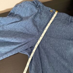 J Jill Linen Stretch Pants Womens Sz L Petite Blue Cropped Linen Blend Coastal