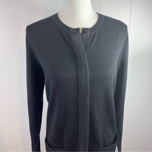 J.Jill Long Sweater Knit Cardigan Duster Wool Blend Pockets Black