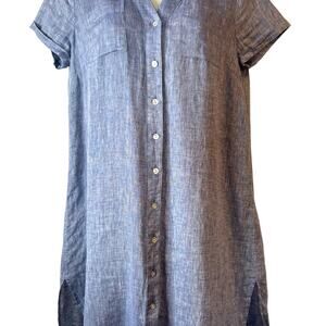 J.Jill Love Linen 100% Chambray Linen Shift Dress V-neck in Blue Womens Sz Small