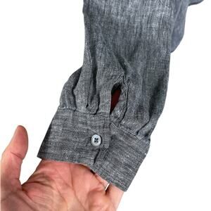 Classic linen button up shirt with one button cuff on long sleeves. Gray. Size 3X. Please see photos for measurements.