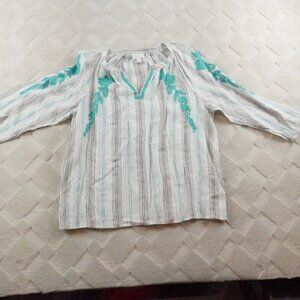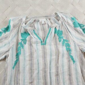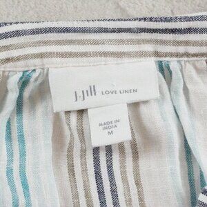 J.Jill Love Linen Blouse Womens Medium Striped Multi Color Embroidered
